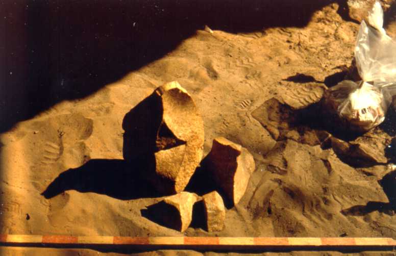 | Paisagem uniforme, aparentemente sem grandes recursos, convidando para uma vida errante, em assentamentos transitórios, com algum adensamento em locais, onde alimentos, matérias primas e abrigos sejam mais abundantes. Neste cenário, fazemos a primeira parada junto a uns morros testemunhos esculpidos em arenito, pela chuva e o vento. Aqui encontramos os mais antigos vestígios do Homem sul-mato-grossense, instalado, num primeiro momento, com certa estabilidade; em momento posterior certamente de forma passageira, em suas excursões de caça e coleta. Ele não nasceu aqui, nem é esta sua estação pioneira, porque assentamentos semelhantes já se espalham, nesse momento, por todo o planalto brasileiro e nem a Amazônia está excluída. No município de Paranaíba, na margem esquerda do alto rio Sucuriú, este homem sul-mato-grossense foi estudado por uma equipe de arqueólogos do Instituto Anchietano de Pesquisas/UNISINOS e do campus de Três Lagoas da UFMS (Veroneze, 1994 e Beber, 1995). Eles pesquisaram sete sítios em morros testemunhos e afloramentos rochosos da Formação Botucatu, que se destacam na chapada coberta por Savana Arbórea Aberta, em altitudes entre 400 e 600 m. Os testemunhos da passagem desse primeiro ocupante aparecem em pequenas abas rochosas e num amplo espaço escavado debaixo de uma laje desnuda. As paredes desses abrigos estão decoradas com pinturas simples, abstratas, lineares, acompanhadas por algumas figuras chapadas. O pigmento utilizado, predominantemente, é o vermelho e o vinho. Entre as figuras mais antigas algumas fazem combinações de linhas vermelhas e amarelas. No grande espaço subterrâneo há também gravuras, às vezes complexas, compostas por sulcos retilíneos e pequenas depressões. O sítio mais importante é um amplo salão escavado pelas águas debaixo de uma laje desnuda de arenito silicificado. Ele mede 270 por 84 m e se compõe de cinco espaços, iluminados a partir de aberturas laterais, ou de desmoronamentos do teto. O chão é lavado pela água, que no tempo das chuvas penetra pelo teto e as aberturas laterais. Por ocasião da primeira visita, a superfície estava coberta por grande número de fragmentos líticos, a maior parte despencados do teto e fragmentos muito pequenos, não identificáveis, de cerâmica. A avaliação da ocupação foi realizada através de um corte estratigráfico de um metro quadrado, em espaço iluminado, junto à abertura principal do grande salão. Neste corte, aprofundado até 210 cm, havia material lítico até 150 cm de profundidade. Entre 80 e 120 cm o material lítico e o carvão eram tão densamente sobrepostos que tornavam impossível a escavação com ferramentas, obrigando o arqueólogo a retirar o material com as mãos. A maior parte desse material eram fragmentos de arenito silicificado desprendidos do teto, alguns modificados pelo homem e transformados em instrumentos, que lembram os artefatos dos níveis mais profundos dos abrigos de Serranópolis, atribuídos à tradição Itaparica. Três datas de C14 confirmam esta atribuição: 10.090 ± 70 anos A.P. é a data do nível de 120 a 130 cm; 10.480 ± 70 a do nível de 130 a 140 cm; 10.340 ± 110 a do nível de 140 a 150 cm. Faltam datações para os níveis superiores, onde o material se torna escasso. Nos abrigos pequenos a ocupação foi menos intensa porque o espaço protegido era muito reduzido, não alcançando geralmente nem 50 metros quadrados. Em dois deles foram feitos cortes estratigráficos, um deles de 1,50 por 1,50 m, levado até 110 cm de profundidade, onde foi interrompido por grandes blocos caídos; o outro, de 2,00 por 2,00 m foi aprofundado até 210 cm. Ambos mostraram ocupação passageira, com algumas lascas e um pouco de carvão. No primeiro desses cortes, entre 70 e 80 cm foi conseguida uma data de 6.710 ± 100, e entre 90 e 100 cm uma data de 7.430 ± 65 anos antes do Presente. Talvez na base as datas repetiriam as do salão subterrâneo. A ocupação humana antiga só foi registrada nesses poucos morros testemunhos, agrupados em reduzido espaço, em meio à chapada coberta por pastos para criação de animais. Esses morros deveriam servir de referência para populações migrantes, que neles encontravam abrigo, matéria prima e recursos de alimentação. O abrigo grande seria uma espécie de assentamento central e as pequenas abas dos outros morros, espaços de apoio. Sítios parecidos, mas não estudados, foram vistos nos municípios de Costa Rica, Pedro Leopoldo e Coxim, nos divisores de água entre os rios Paraná e Paraguai. Os abrigos do Alto Sucuriú repetem o que se conhece do planalto Central do Brasil: um primeiro povoamento da tradição Itaparica, com artefatos formais de uma indústria curada, que se prolonga de 11.000 até aproximadamente 8.500 anos A.P.. Ela é seguida de uma indústria expeditiva, que ao redor de 6.800 também desaparece, como se a população tivesse sumido do planalto brasileiro (Araújo, Neves & Piló, 2003). Três mil anos depois, em ambiente que parece árido, reaparecem, à beira de córregos, pequenos sítios de caçadores, com muitas fogueiras. Estes sítios estendem-se até a proximidade do rio Paraná e até os abrigos do planalto basáltico de Maracaju (Kashimoto & Martins, 2000; Martins, Kashimoto & Tatumi, 2002; Martins, 2003), ambientes que não mais são de savana, mas de floresta. Isto nos faz duvidar se estes sítios representam a volta dos elementos da savana, ou são influências meridionais, ligadas à chamada tradição Humaitá. Os artefatos principais são lascas, espessos plano-convexos bem acabados e pequenos bifaces. Este novo horizonte lítico, atribuído a caçadores, antecede ali ao horizonte cerâmico dos horticultores Guaranis e às vezes parece confundir-se com seus inícios. No Médio Tocantins (Morales, 2005 e Bueno, 2005) e também em Minas Gerais (Prous, com. pes., 2005), aparece, nesse mesmo tempo, um horizonte de plano-convexos semelhantes, mas 